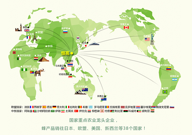 Hengliang bee products have reached 5 continents, 38 countries and areas!