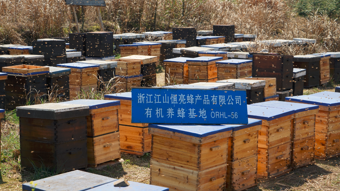 我们先参观了在江郎山脚下的恒亮养蜂基地,这只是恒亮640个养蜂基地中的一个而已。江郎山是世界文化遗产,国家4A级风景区。这里空气特别新鲜,树木成荫,花丛遍地,是片采蜜的好地方