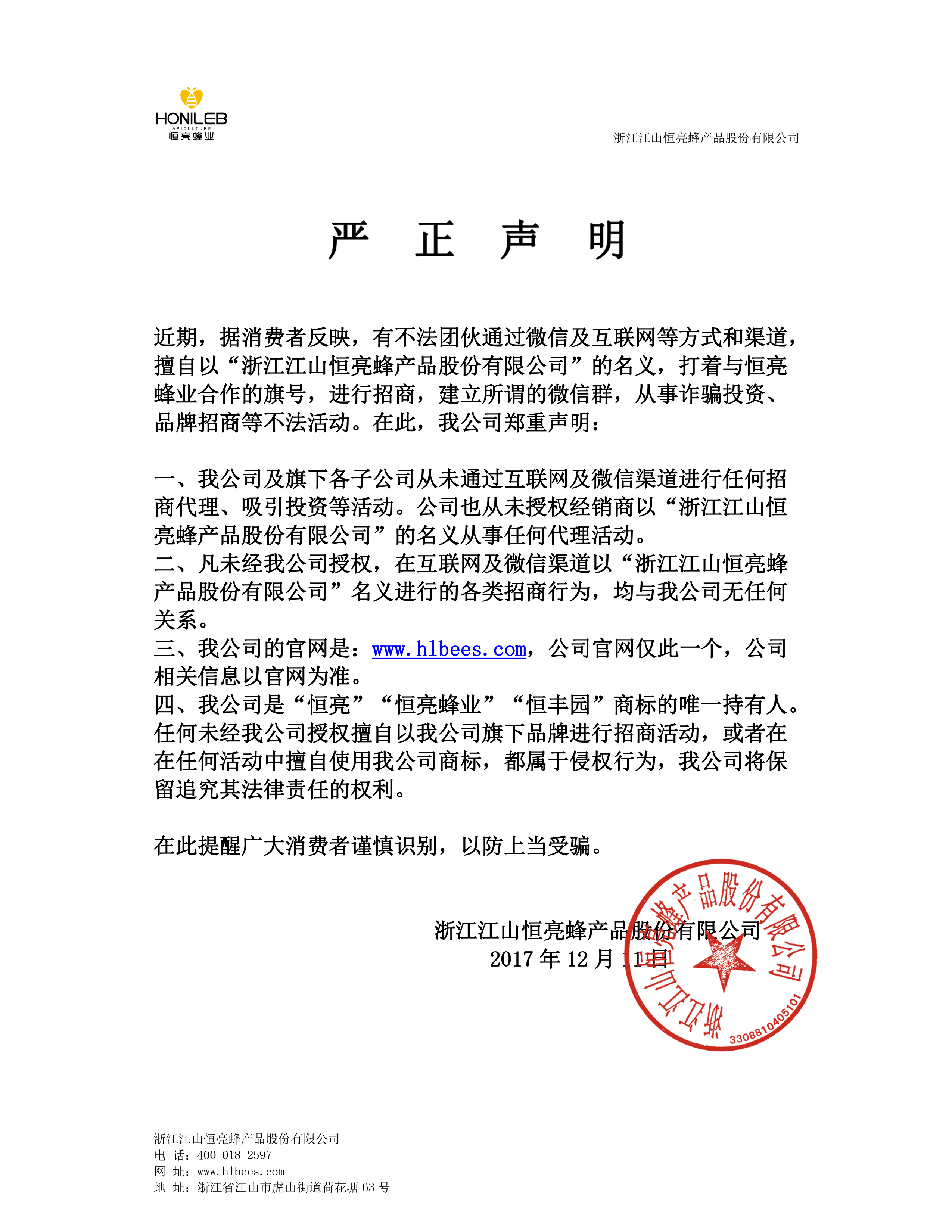 关于冒用恒亮蜂业从事不法活动的严正声明
