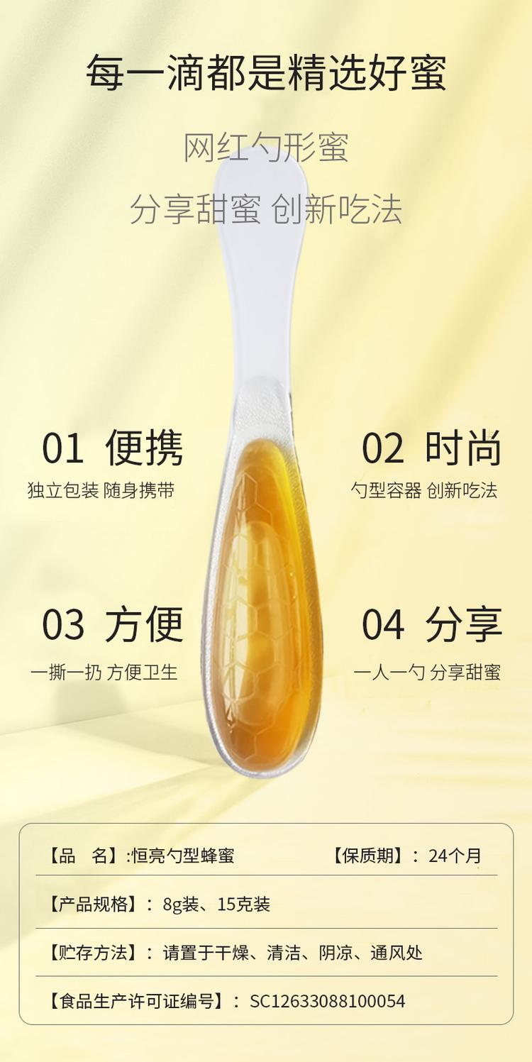 恒亮这款能“自带勺子”的勺子蜜,最大的好处就是方便携带,轻松揭开,即可完成一杯香香甜甜的蜂蜜饮品,非常方便,因为不接触空气,非常卫生且安全。