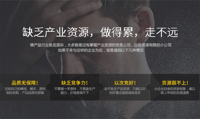 恒亮的蜂产品原料全部源自公司签约的1400名蜂农,每一种原料都明确标示了具体的蜂场编号、产地、花源及用药情况,从源头上控制了产品原料的质量。。